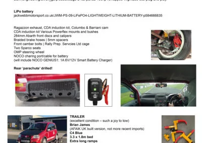 Had a laugh! Can’t afford to continue. Time for someone else to discover ‘small car on the limit’ fun! My track Panda 100HP (but more than that now) and trailer bundle is for sale. I’m bowing out. Car (SORN, no CAT), Storm Stage 2 mapping (click it to view – 116bhp or thereabouts, but it’s all in the curve apparently), roll cage, two sets of wheels (Nankang NS-2R / Pilot Sport 3) and a Brian James C4 Blue trailer (bloody great… ~£3,500 on its own, straps included) and a fair few supporting bits. Powerflex (and Polybush) bushings, braided brake lines, two Sparco seats, harnesses etc… All set to go. In my opinion way more fun driving it than ‘bigger, faster’ cars. It has surprised and entertained a fair few people. Am going to take the stickers off. The lacquer is removing itself (but it’s all about function, not gloss). And it would be horrible to drive as a daily – just saying – bit niche? Photos here of Fettle & Finesse work (last year, full inspection and trim fixing and strengthening etc) and some other info. Not sure what I’ve missed. Note – two sets of wheels/tyres (Nankangs barely broken in). Happy to deliver for diesel (at today’s price per litre!). As I said, stickers are coming off as they are as much me as the car – the new owner can start their own story! It’s been a hoot. Feel free to share (please). Thanks. Feel free to call (07541 28 58 23) or email me (biff@biffshop.com) for more information (or bigger pictures etc). 78,388 miles. The bundle £7,200 (or near offer).